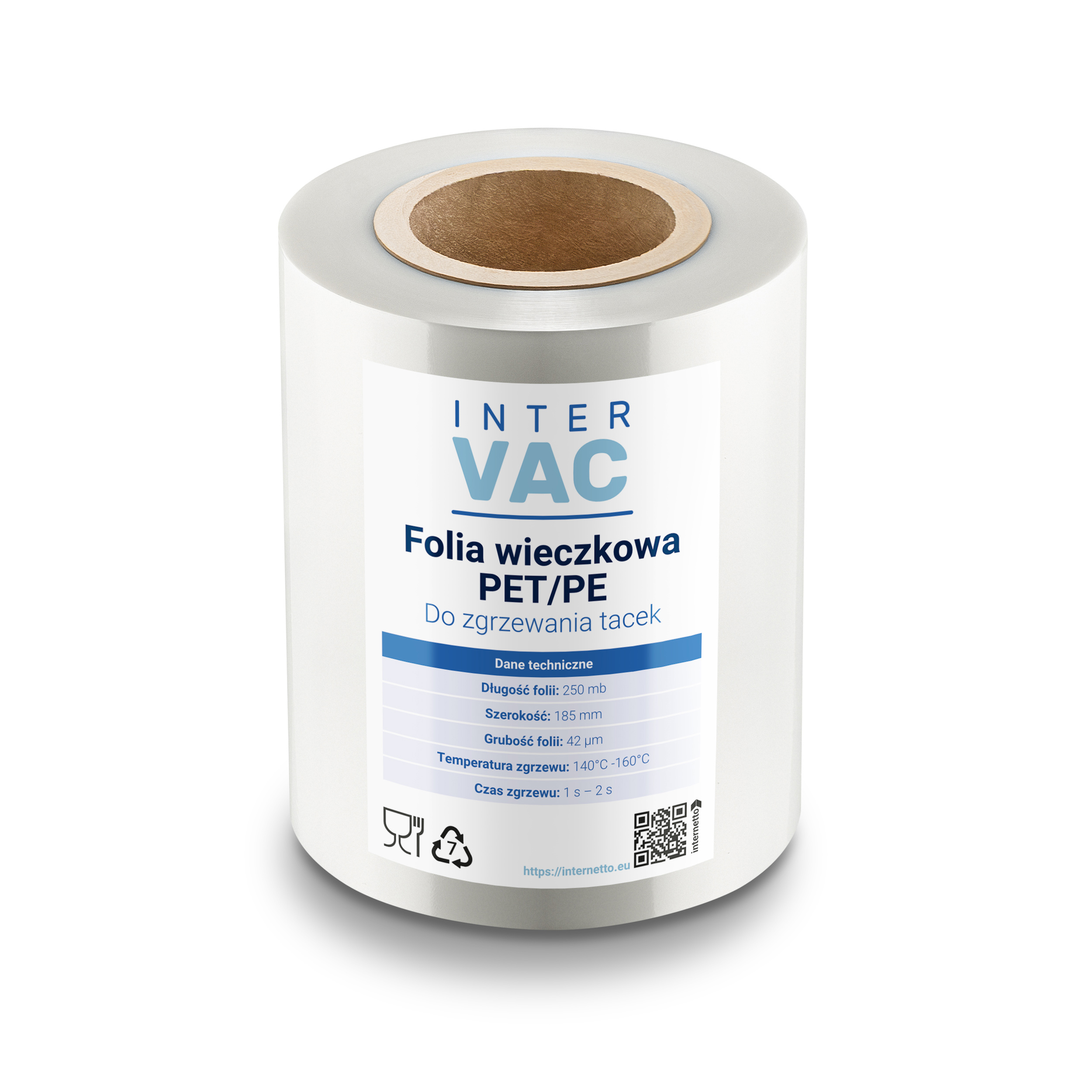Folia do zgrzewania tacek i pojemników wieczkowa PET/PE 185mm x42um x250m