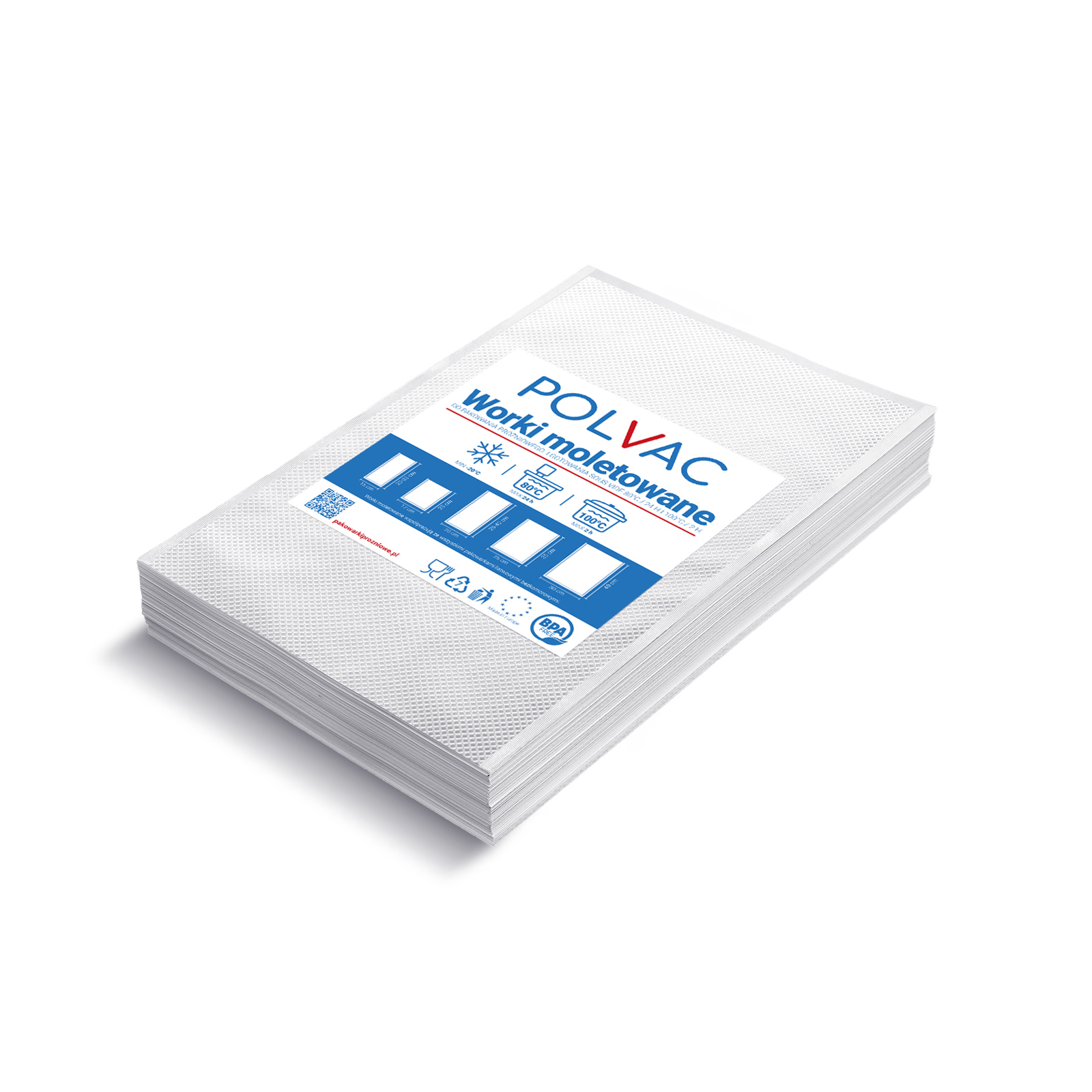 Worki tłoczone do pakowania próżniowego POLVAC wykonane są z folii o wysokiej wytrzymałości na rozerwanie. Warstwa moletowana posiada specjalny kształt przetłoczeń, pozwalający na osiąganie wyższego podciśnienia w krótszym czasie, co ułatwia i przyspiesza pakowanie próżniowe. Strona gładka worka, dzięki wysokiej transparentności, pomaga w lepszym eksponowaniu zawartości opakowania. Woreczki moletowane POLVAC współpracują z wszystkimi pakowarkami listwowymi dostępnymi na naszym rynku; od najprostszych modeli dostępnych w dyskontach spożywczych, po profesjonalne urządzenia stosowane w gastronomii i cateringu. Niezależnie od zapotrzebowania, stosowanie naszych worków gwarantuje niezawodność, wszechstronność i wygodę stosowania.